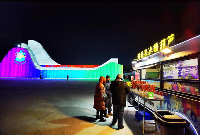 糖葫芦摊园区内随处可见相中买就完了,嘎嘎甜啃着糖葫芦看冰景那感觉太棒了!