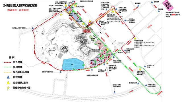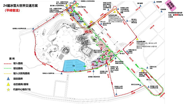 从江北前往哈尔滨冰雪大世界,在冰峰路右转,按交通指示,可行驶至冰雪大世界停车场。