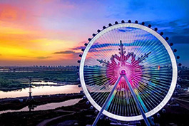 春末夏初,清风拂过柳树,暖阳普照,雪花摩天轮和哈尔滨市花丁香花初次邂逅冰雪大世界,为这个冰城增添了浪漫气息。