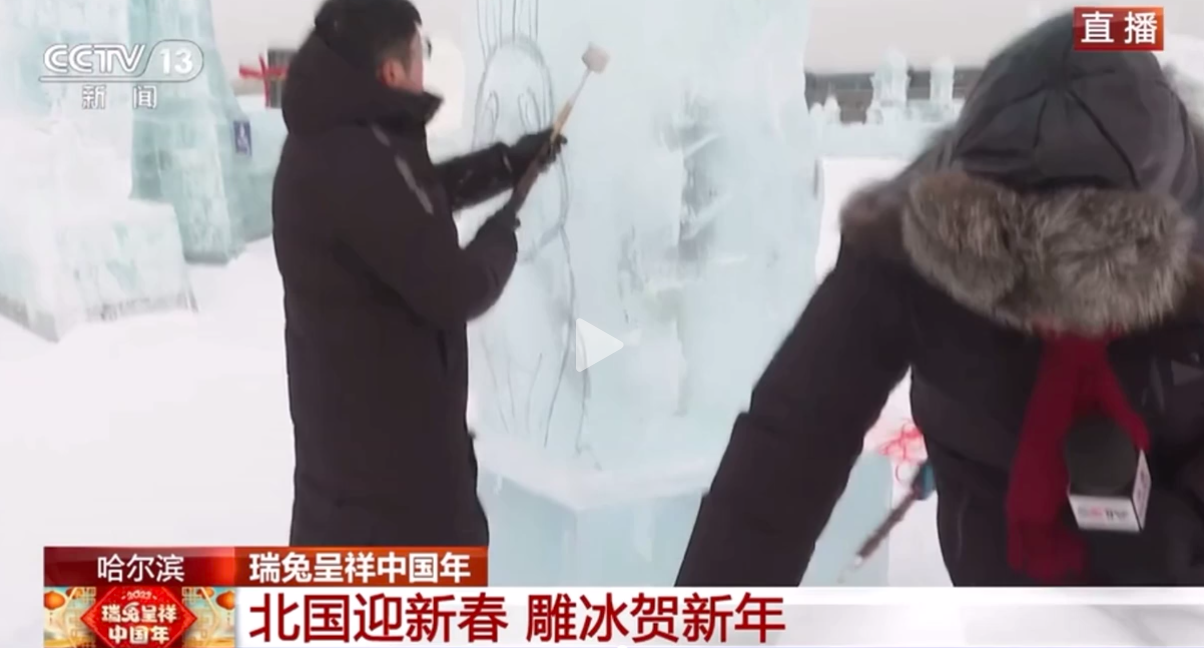 将美好的新春祝愿,雕刻在冰雕上面,这是独属于哈尔滨冰雪大世界的