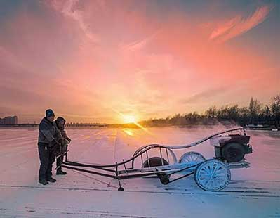 十二月的哈尔滨又到了采冰的时节,松花江如同一座“冰工厂”,为哈尔滨冰雪大世界输送上好冰料。