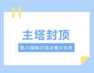 经过连日昼夜奋战,12月8日21:37,第24届哈尔滨冰雪大世界园区主塔“冰雪之冠”完成封顶,进入最后的细节打磨和灯光调试阶段。