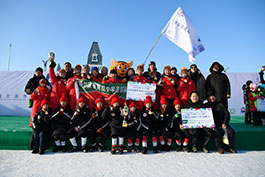 由哈尔滨教育局、道理区政府联合开展,市青少年校园足球文化节组委会主办的“雪地足球嘉年华”活动总决赛及颁奖仪式2月6日在哈尔滨冰雪大世界隆重举办。