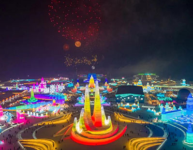 这座占地面积82万平方米、景观建设面积40万平方米的冰雪乐园,经过2000名工人的昼夜建设打磨,用23万立方米冰与雪,建造了65组冰雪景观,单体景观数量超百个,再一次向市民和游客展示流光溢彩、壮美梦幻的冰雪奇观。