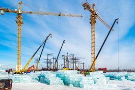 气势宏大的场面,热火朝天的场景,这张震撼的冰雪版“清明上河图”,便是第十九届哈尔滨冰雪大世界的施工现场。