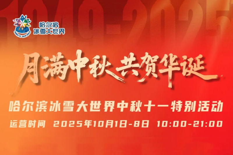 “月满中秋 共贺华诞”哈尔滨冰雪大世界国庆中秋八天特别活动将于2025年10月1日至8日举办,诚邀广大市民和游客朋友共同欢度佳节。