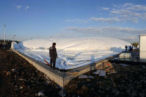 近日,由哈尔滨冰雪有大世界股份有限公司投资建设的哈尔滨冰雪大世界主题乐园(室内馆)正在紧张的施工中,场馆外观采用的气膜建筑,已于昨晚开始施工。