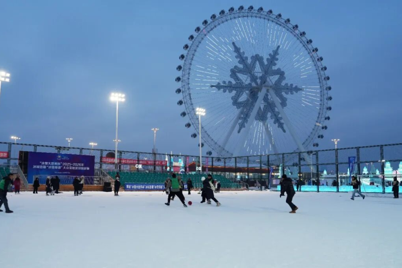 2026年哈尔滨市首届高中雪地足球冠军联赛小组赛在哈尔滨冰雪大世界的雪地足球场内接连上演,用冰雪运动点燃了冬日激情,打造出“体育+文旅”的全新范本。