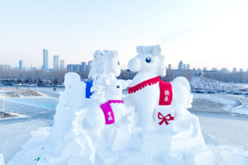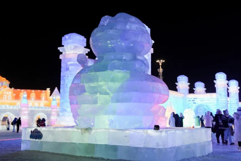 今年冬天,第二十七届哈尔滨冰雪大世界打造了十二生肖冰雕景观群,一个个Q萌可爱的生肖冰雕活泼可爱、充满童趣,吸引了众多游客合照打卡。