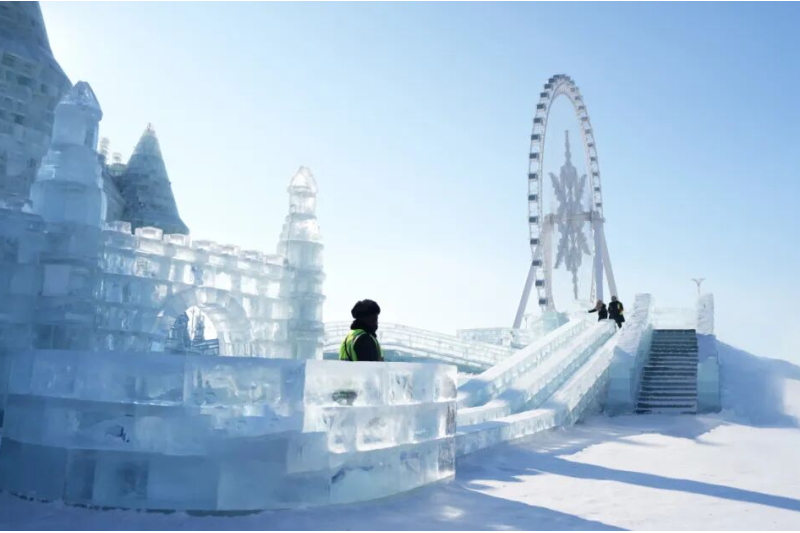 哈尔滨冰雪大世界日日上新,主塔周围一批精致玲珑的冰雕作品亮相,引得游客、网友纷纷感叹:“哈尔滨真的是‘冰可雕万物’,太神奇了!”