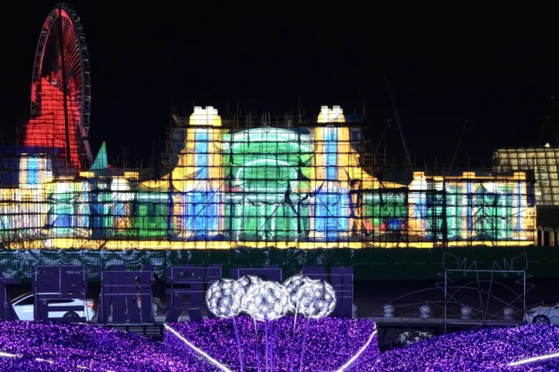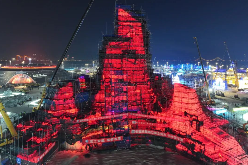 经过施工人员连续多日昼夜奋战,12月10日17时18分,第二十七届哈尔滨冰雪大世界主塔“冰灯启梦”完成了最后一块冰体的砌筑,正式封顶。接下来,主塔将进入最后的细节打磨和灯光调试阶段。