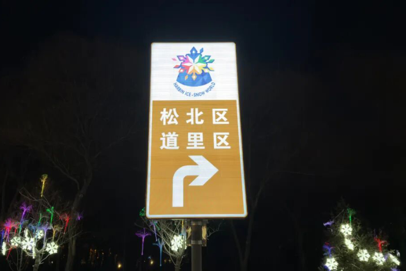 哈尔滨太宠粉啦!为提升哈尔滨冰雪大世界景区周边交通品质,哈尔滨市公安交管部门在松北大道、太阳大道、冰景路等景区核心进出通道,集中投放了54块主动发光大型指引标志。