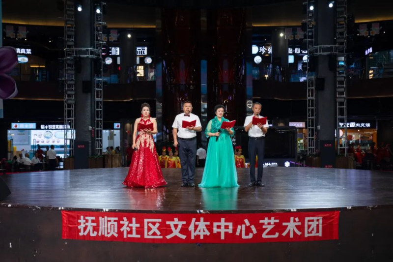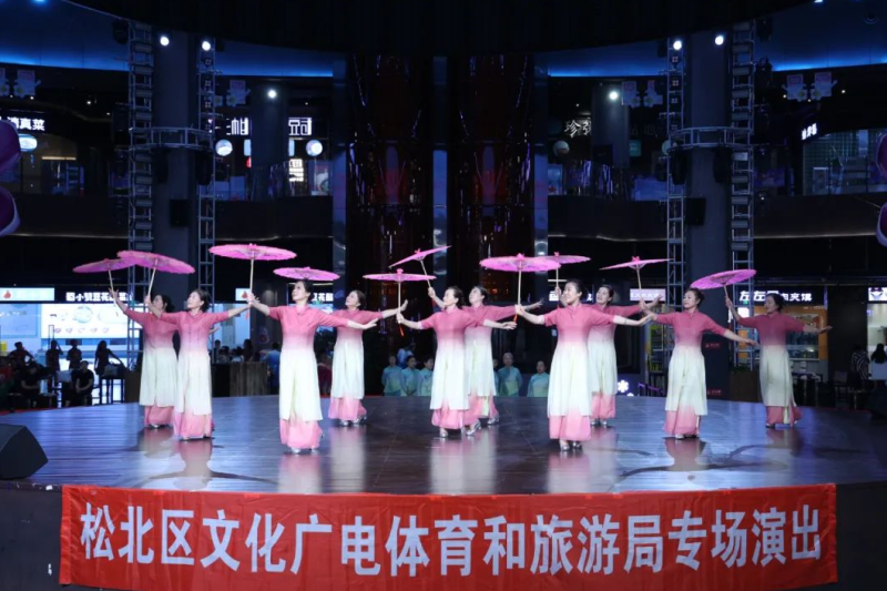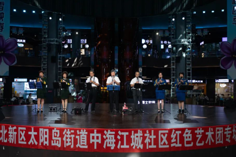 8月6日,一场哈尔滨冰雪大世界公益演出系列活动在冰雪美食馆中心舞台上演,由松北新区太阳岛街道中海江城社区红色艺术团带来的专场演出精彩上演。