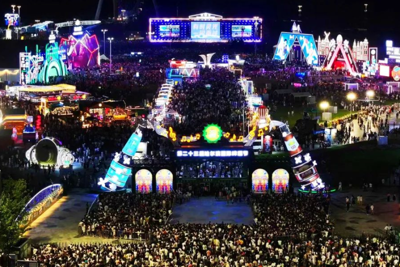 8月8日晚,哈尔滨冰雪大世界园区星光璀璨、人声鼎沸,哈尔滨冰雪大世界×携程旅行暑期嘉年华在万千市民与游客的期待与欢呼中拉开帷幕。