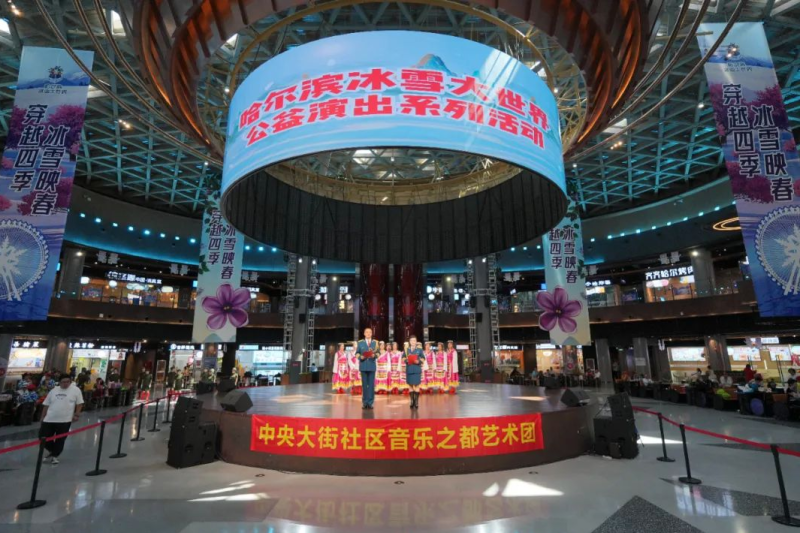8月8日,哈尔滨冰雪大世界冰雪美食馆中心舞台接连迎来两场哈尔滨冰雪大世界公益演出系列活动,为冰城夏日增添了浓郁的艺术氛围。