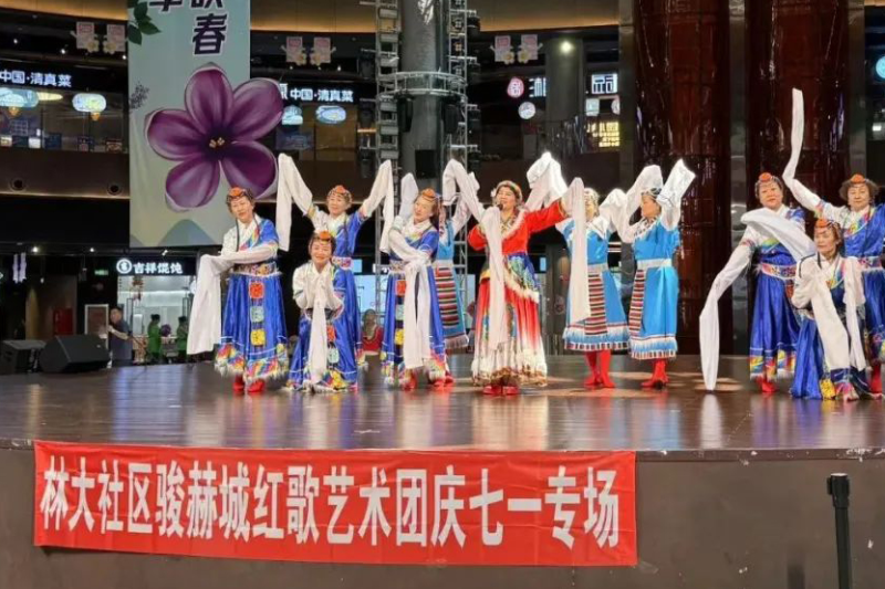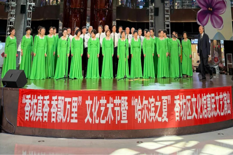 7月11日,热烈祝贺第二十三届哈尔滨国际啤酒节盛大开幕公益演出系列活动在冰雪美食馆中心舞台精彩延续,林大社区骏赫城红歌艺术团与中共南岗大成街工委、南岗区大成街道办事处接力登台,用多样的艺术形式,为节日增添文化色彩。