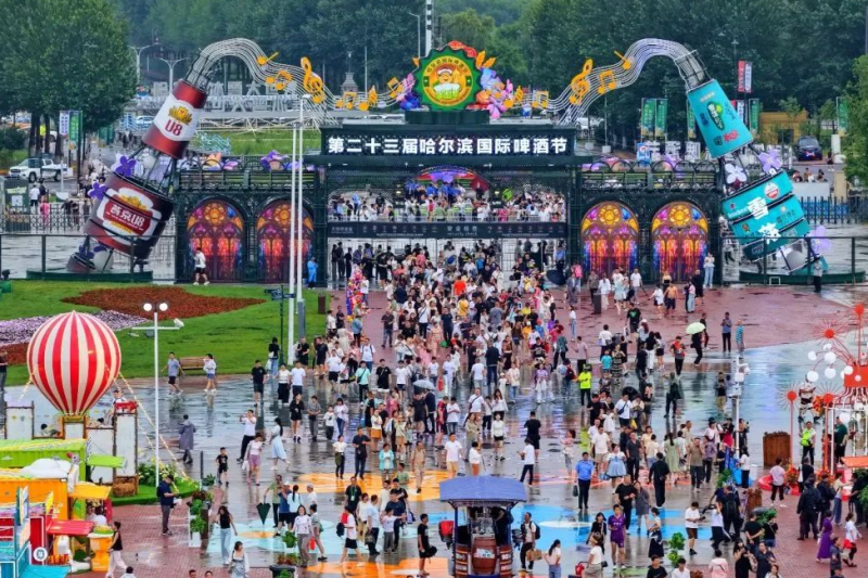 第二十三届哈尔滨国际啤酒节7月5日晚在哈尔滨冰雪大世界园区开幕。“音乐之城”的醉人旋律、“啤酒之都”的大气豪迈和“冰城夏都”的独特风情在此交织,市民和游客开启一场限定狂欢。