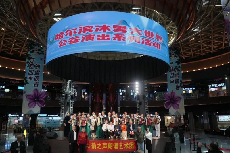 5月24日,哈尔滨冰雪大世界文艺氛围拉满,韵之声朗诵艺术团、小雪人艺术团、哈尔滨市妇儿中心大提琴音乐团、小冰花艺术团,在冰雪美食馆中心舞台接力开演,为现场观众带来多元公益演出盛宴。