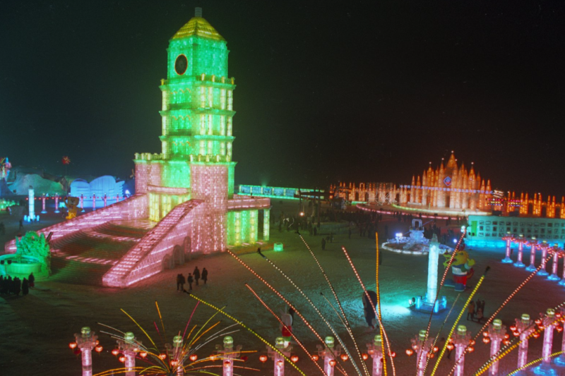 从1999年首届哈尔滨冰雪大世界在松花江畔亮起第一盏冰灯,到第二十六届“亚洲同心”的全彩可变灯光联动,哈尔滨冰雪大世界的美景如一部流动的冰雕史。