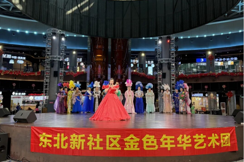 3月17日,哈尔滨冰雪大世界冰雪美食馆中心舞台迎来了东北新社区金色年华艺术团,他们登台为现场市民游客献上一场兼具美感与内涵的公益文艺展演,让冰雪美食馆内不仅有烟火气,更有浓郁的文化气息。