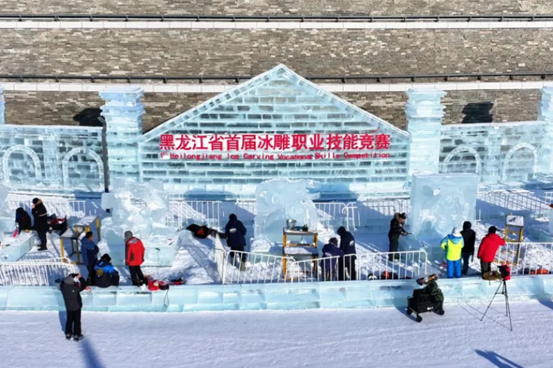 1月15日上午,黑龙江省首届冰雕职业技能竞赛,在哈尔滨冰雪大世界园区正式开赛。