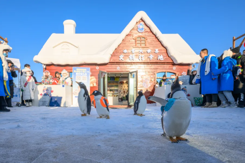 “淘学企鹅来巡店啦!”“没想到逛文创店可以偶遇淘学企鹅!”1月16日,黑龙江冰雪天使“淘学企鹅”空降冰雪大世界文创打卡地。