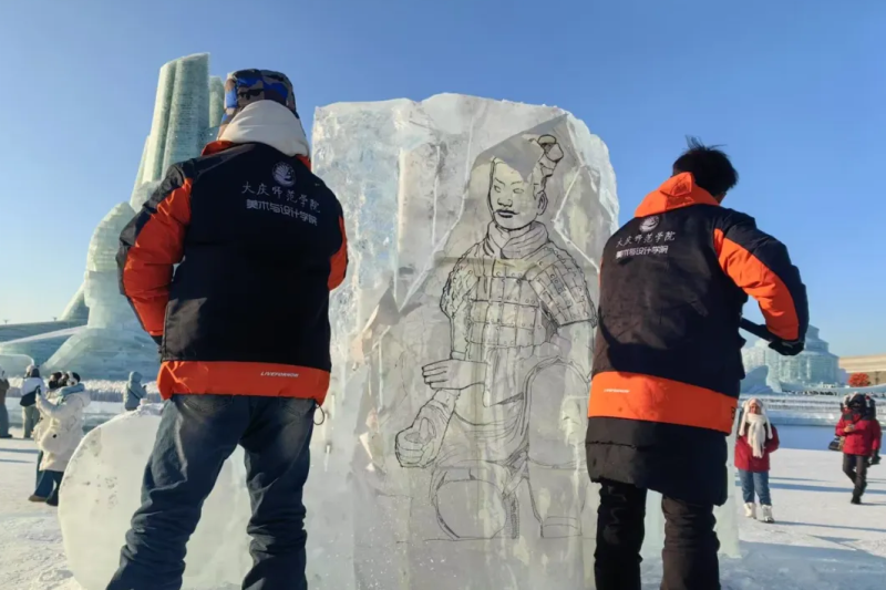 在银装素裹的哈尔滨冰雪大世界,一场冰雪与历史文化的奇妙邂逅正在上演。今日,备受大家期待的“冰”马俑冰雕正式开工雕刻。