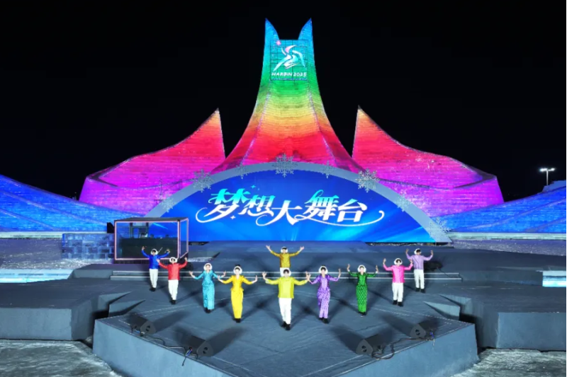 梦想大舞台作为哈尔滨冰雪大世界备受欢迎的室外演出活动,每年冬天都会为游客带来无限欢乐与美好回忆。今年冬天,梦想大舞台全新升级,除了“左右哥”万人蹦迪互动演出以外,增加了更多的国际元素,为寒冷冬夜注入活力与热情。