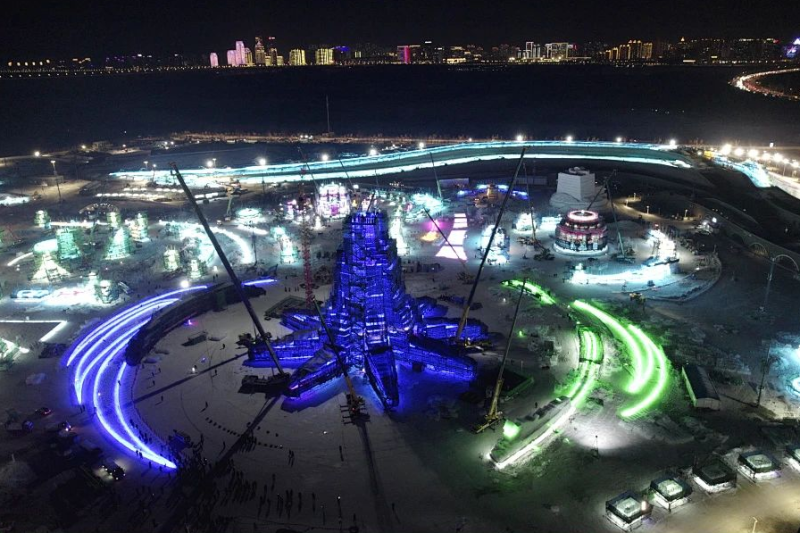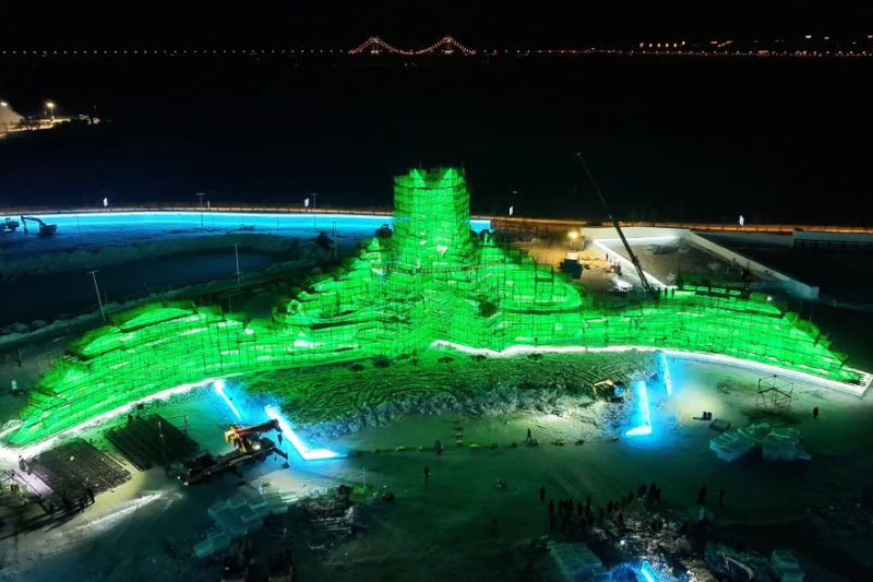 12月11日18时18分,随着最后一块冰体砌筑成功,第二十六届哈尔滨冰雪大世界园区最高的冰建——主塔“亚洲同心”顺利封顶,进入精细打磨与灯光效果调试等收尾阶段,即将以惊艳之姿璀璨登场。