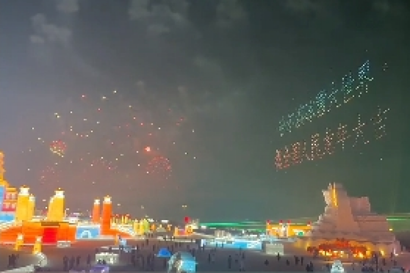 800架无人机表演秀,12分钟高空烟花秀震撼上演!第二十五届哈尔滨冰雪大世界祝全国人民龙年大吉!