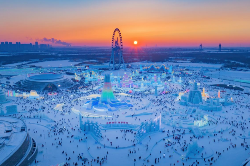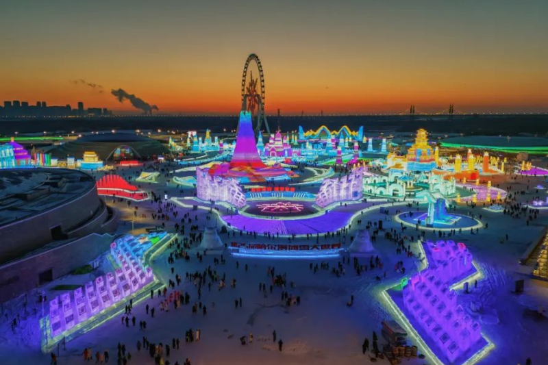第二十五届哈尔滨冰雪大世界与《和平精英》展开跨界合作,在园区打造现实极寒体验区,为广大游客打造一场精彩绝伦的沉浸式冰雪盛宴。