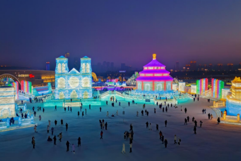 在第二十五届哈尔滨冰雪大世界,冰雪文化与艺术、科技完美交融,为游客打造一座充满魅力的冰雪奇幻乐园。