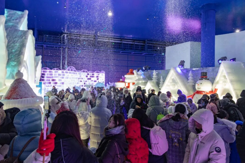 等候多时的游客们鱼贯而入,迎面而来的不是室外的刺骨寒风,而是一个晶莹剔透的冰雪世界。