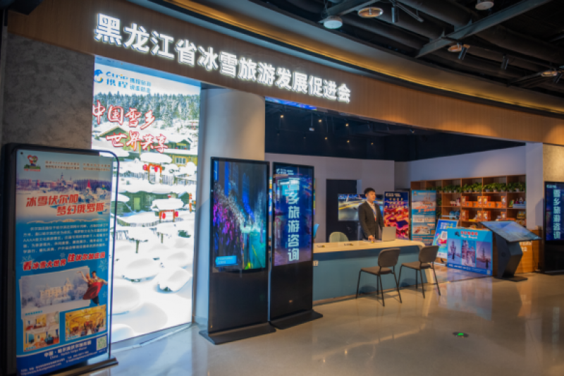 黑龙江省冰雪旅游发展促进会入驻第二十五届哈尔滨冰雪大世界,依托特色主题展厅,推介冰雪文旅精品资源,展示龙江冰雪风采,现场还有工作人员为游客提供冰雪旅游咨询服务。